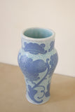 Sgraffito vase from 1920 by Josef Ekberg for Gustavsberg, Sweden. Flower motif in Swedish Jugend (or Art Nouveau) style decorates the vase in blue shades. Designer signature with the year it was made underneath the vase. Age appropriate wear with some small marks.