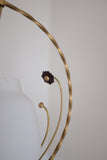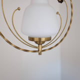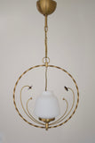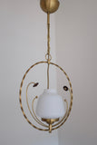 Charming 1950s Round Pendant in Brass and Glass with organic flower ornament. With decorative details such as twisted brass around the lamp and flower decorations it is very much in the style of the Swedish Modern design era of the 1940/50s. The Glass lantern has two small hairline cracks that are only visibel when up close. Overall in a very good condition with age appropriate wear to the brass. Comes with original wiring.