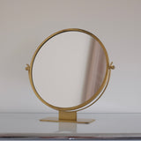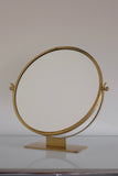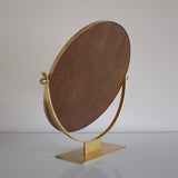 Beautiful 1940/50s Brass Table Mirror by Ystad metall, Sweden. Brass base and frame with a teak on the back of the mirror it is highly decorative in its simple and elegant design. Age appropriate wear with some small marks, overall in a very good condition