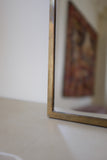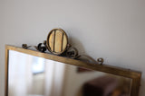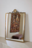 Swedish Modern Metal Wall Mirror circa 1950s. Beautiful organic shaped ornament on the top of the mirror. Very good condition with age appropriate wear to the metal and the glass.