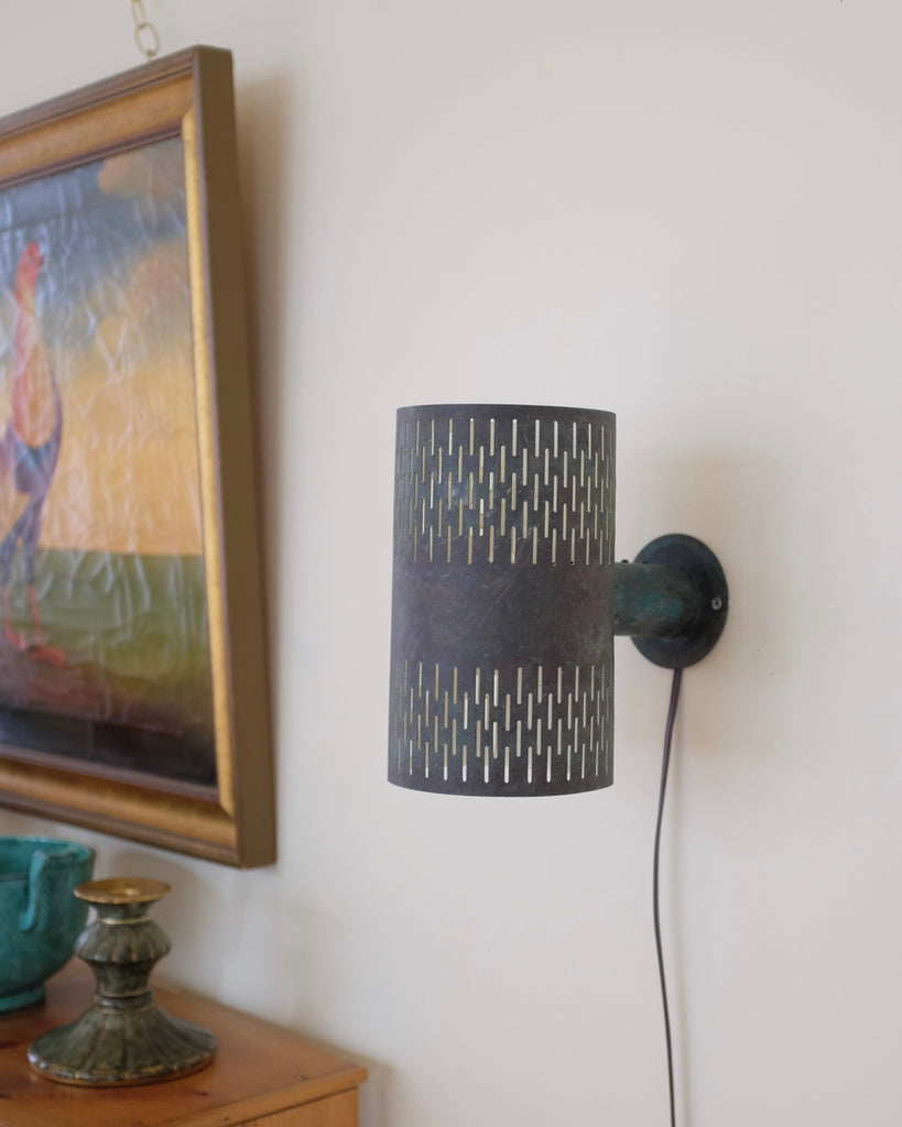 A pair of Cooper Wall Lights by Hans Bergström for Ateljé Lyktan, Sweden. Circa 1950s and intended for outdoor use initially but also make great wall lights indoor. Age appropriate wear to the cooper and with makers label on both lamps. New US wiring. Can also be hardwired if needed.