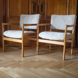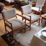 Gorgeous pair of 1960's Armchairs by the iconic Swedish Mid-Century designer Alf Svensson for Bjästa Snickerifabrik. Made of oak wood they are both on great vintage condition and newly upholstered in Scandilock sheepskin.