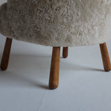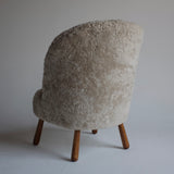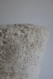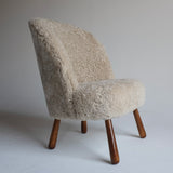 A Swedish Modern Side Chair newly upholstered in high-quality Sheepskin by Scandilock. This chair is most likely form the 1940s by an unknown designer and in the style of the famous Clam chair by Arnold Madsen with its rounded leg shape.