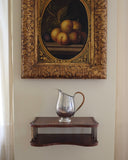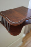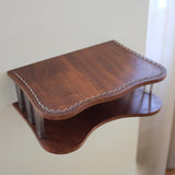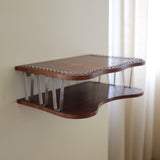 Gorgeous Swedish Mid-century Wall shelf decorated with metal filigree details around the upper shelf. Kidney shaped curved front that adds charm with the possibility to use for display of smaller objects or to use as a bedside shelf. Age appropriate wear to the wood and metal with small marks.