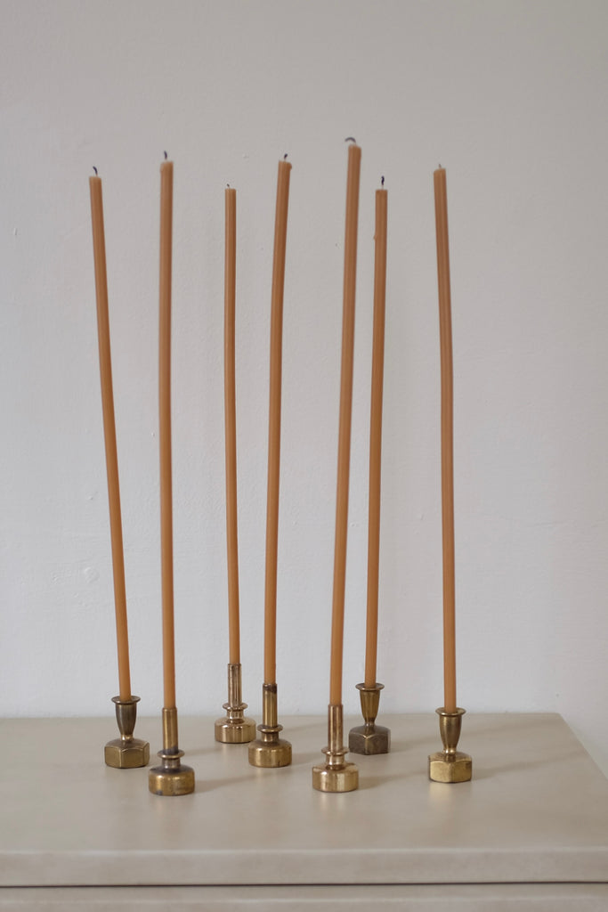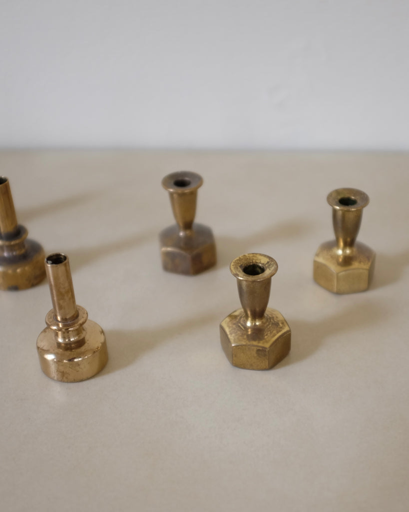 Set of 7 Small candle holders in Model L125 and L 92 by Hans-Agne Jakobsson. Made by the designers own company in Sweden circa 1950s with age appropriate wear. Candles are not included.