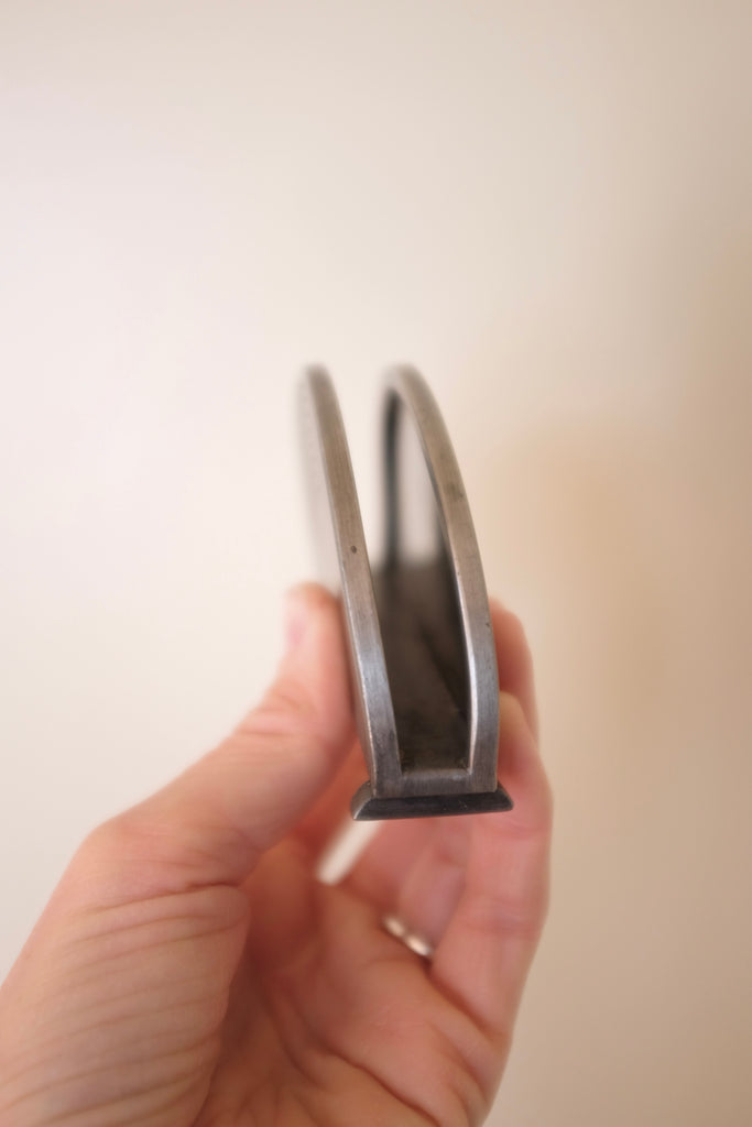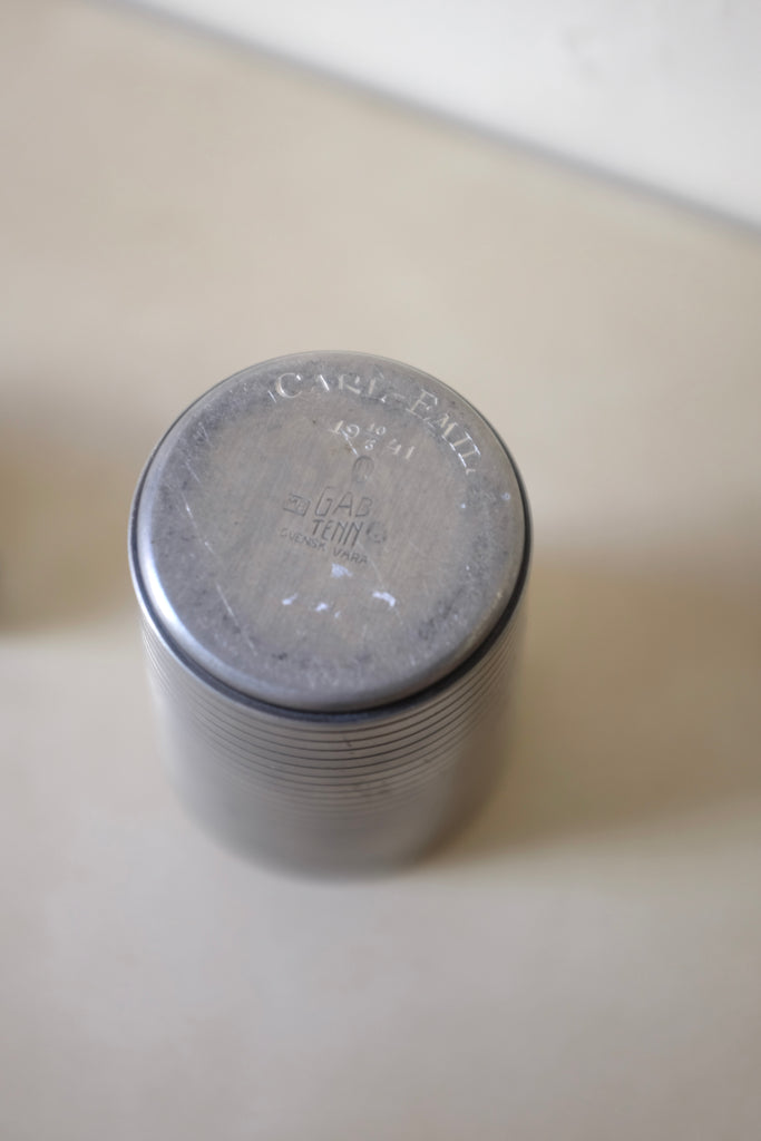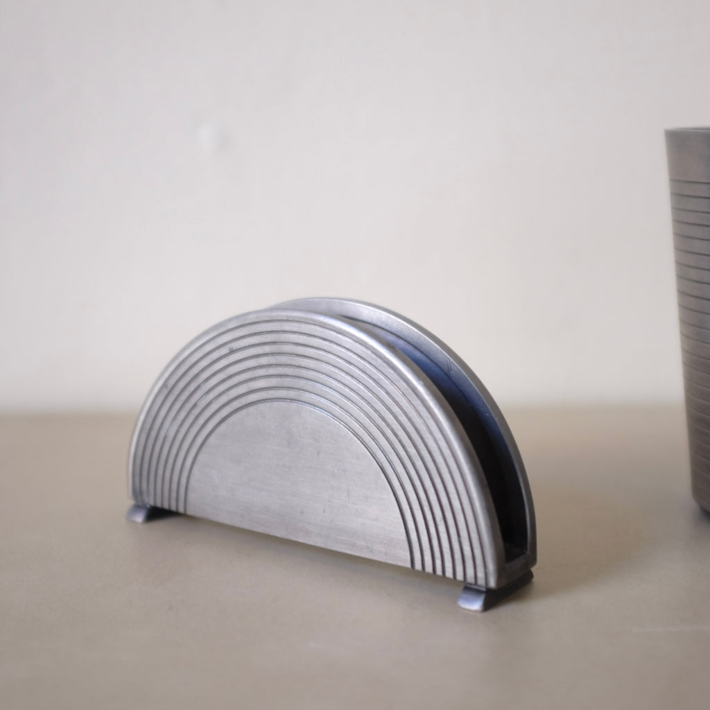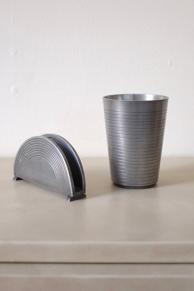 Beautiful set of Pewter Cup and Letter holder by by GAB, Sweden, from 1938. Both objects have decorative engraved lines across the body and makers signature at the bottom. Age appropriate wear to the pewter and the letter holder have a slightly uneven shape at the top (please last photo).